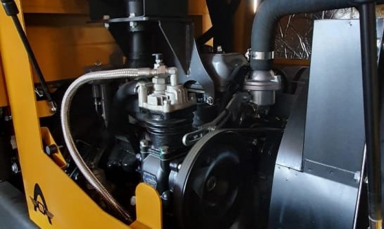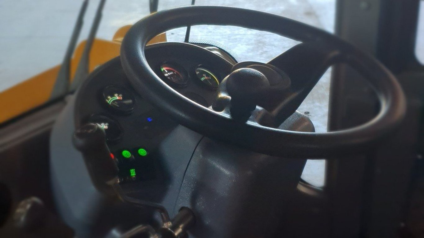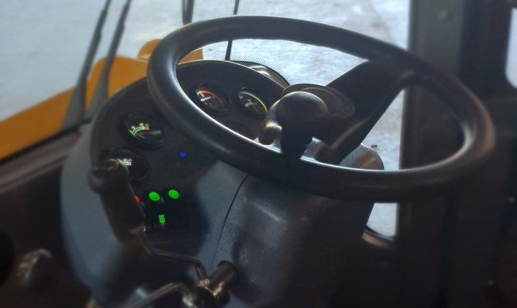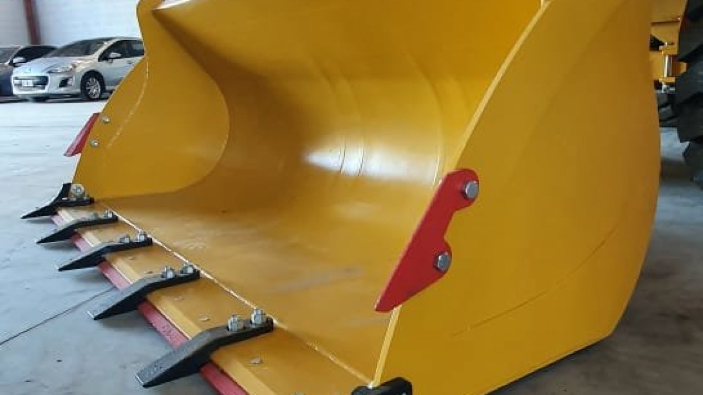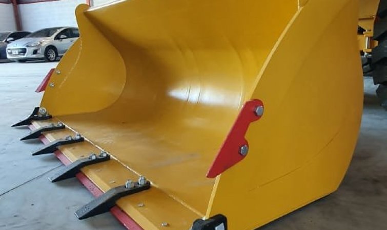 Dispone de un balde frontal de 1.000 litros (1.500kg de capacidad de carga) alcanzando una altura máxima de carga de 4,48 metrs y una altura de descarga de 3,20 metros.